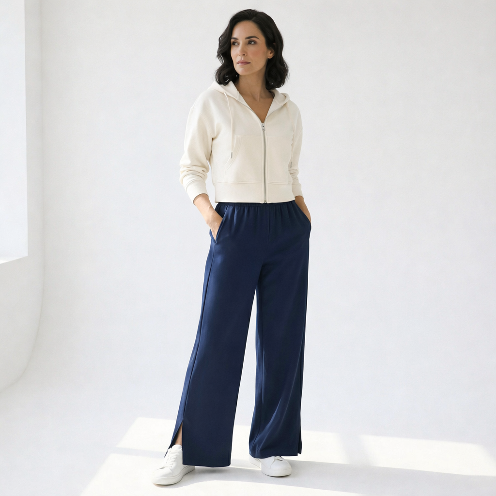 Leg Shape: Full length with wide‑leg flare for relaxed silhouette
